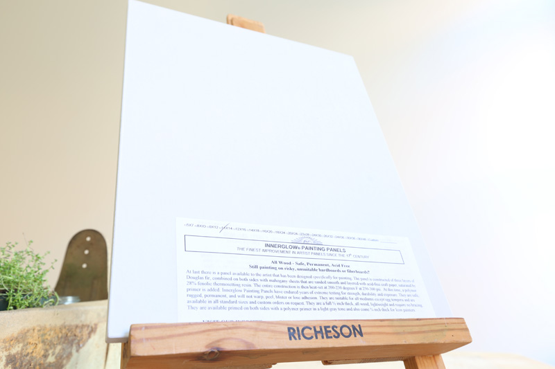 Innerglow painting panels have endured years of extreme testing for strength, durability and exposure. They are safe, rugged and permanent. They won’t warp, peel, blister or lose adhesion. The panels are available in all standard sizes and can be cut to custom shapes and sizes. They are a full 1/2 inch thick, all wood, lightweight and require no bracing. They are primed on both sides with a polymer primer in a traditional light gray tone, ready to accept any type of medium or paint except egg tempera. We also provide 3/4″ thickness for icon painters.